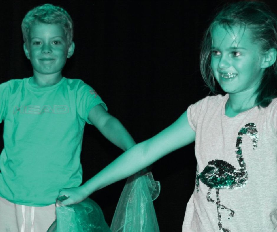 Wir tauchen ab! Und erfinden unsere eigene Unterwasserwelt. Vielleicht entdecken wir zwischen den Algen ein versunkenes Schiff, einen Delphin oder eine Meerjungfrau? Eine Riesenschildkröte, einen Regenbogenfisch oder sogar eine Schatztruhe? Wir werden zu Tiefseetauchern und bleiben dabei sogar trocken. Unter Wasser, auf die Bühne, los!